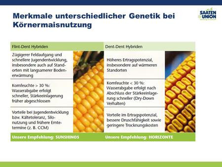- sehr geringe Kornfeuchte => Reduzierung der Trocknungskosten aufgrund der Zahnmaisgenetik