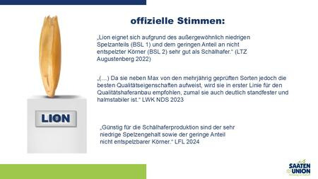 Rechtzeitige Saatzeiten sind vorteilhaft, Lion ist jedoch vergleichsweise gut spätsaatverträglich.