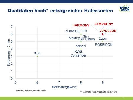 Als mittellange und dabei sehr standfeste Sorte erweitert APOLLON die Anbauareale für den Qualitätshaferanbau auf allen typischen Haferstandorten.
