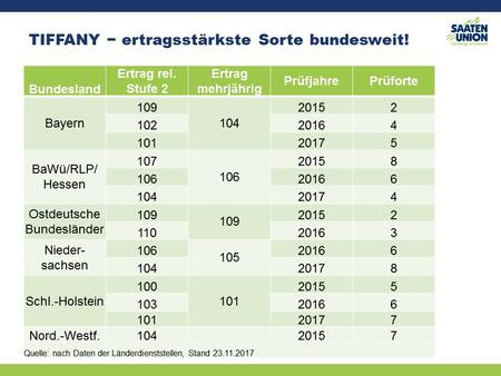 - TIFFANYs Anbausicherheit macht sie zur größten Sorte im konventionellen wie ökologischen Landbau.