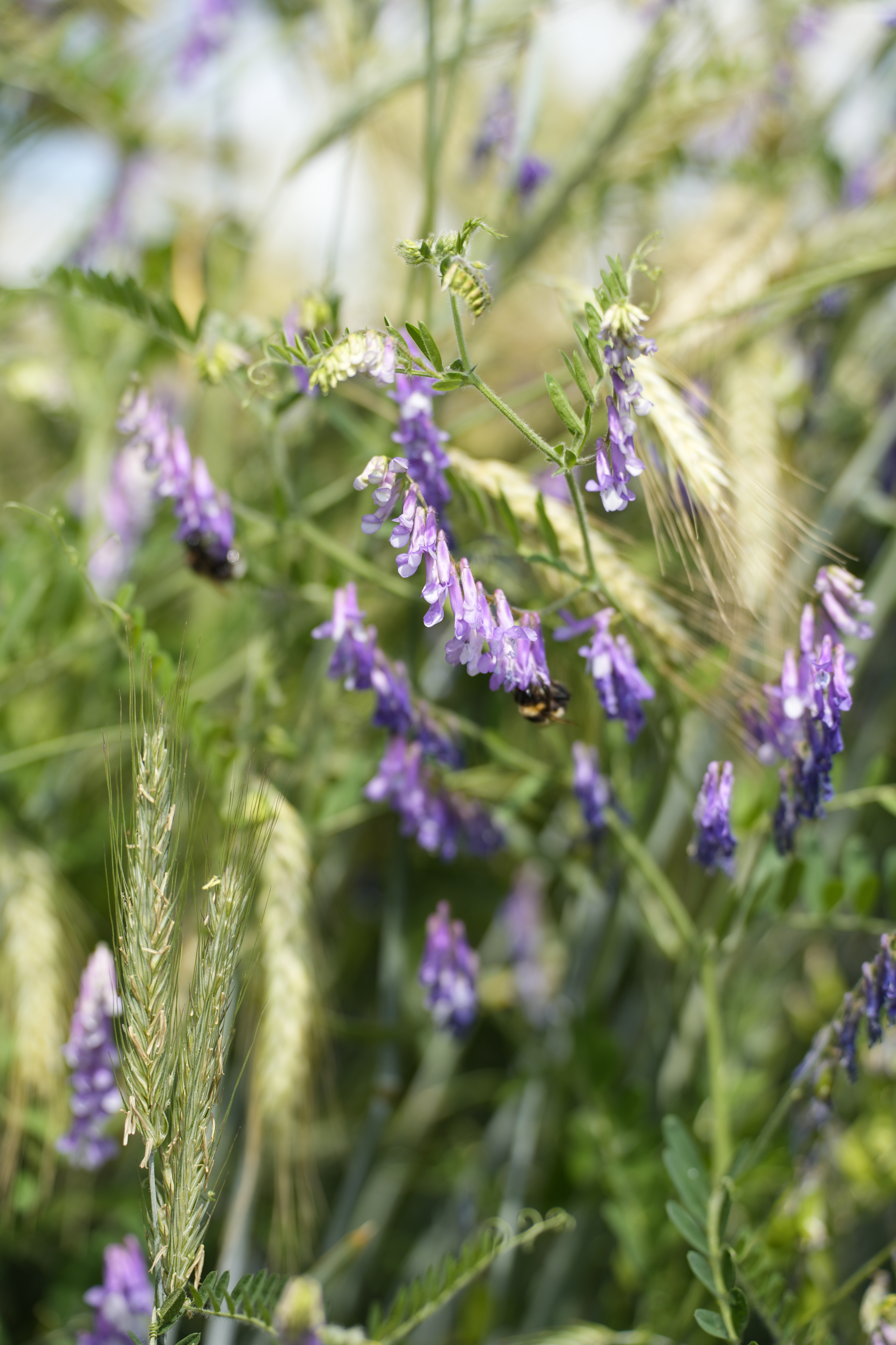 - Die winterharten Wicken (je zur Hälfte Pannonische Wicke und Zottelwicken) liefern zusätzlichen Stickstoff für den Roggen und die Folgefrucht, hervorragender Erosionsschutz